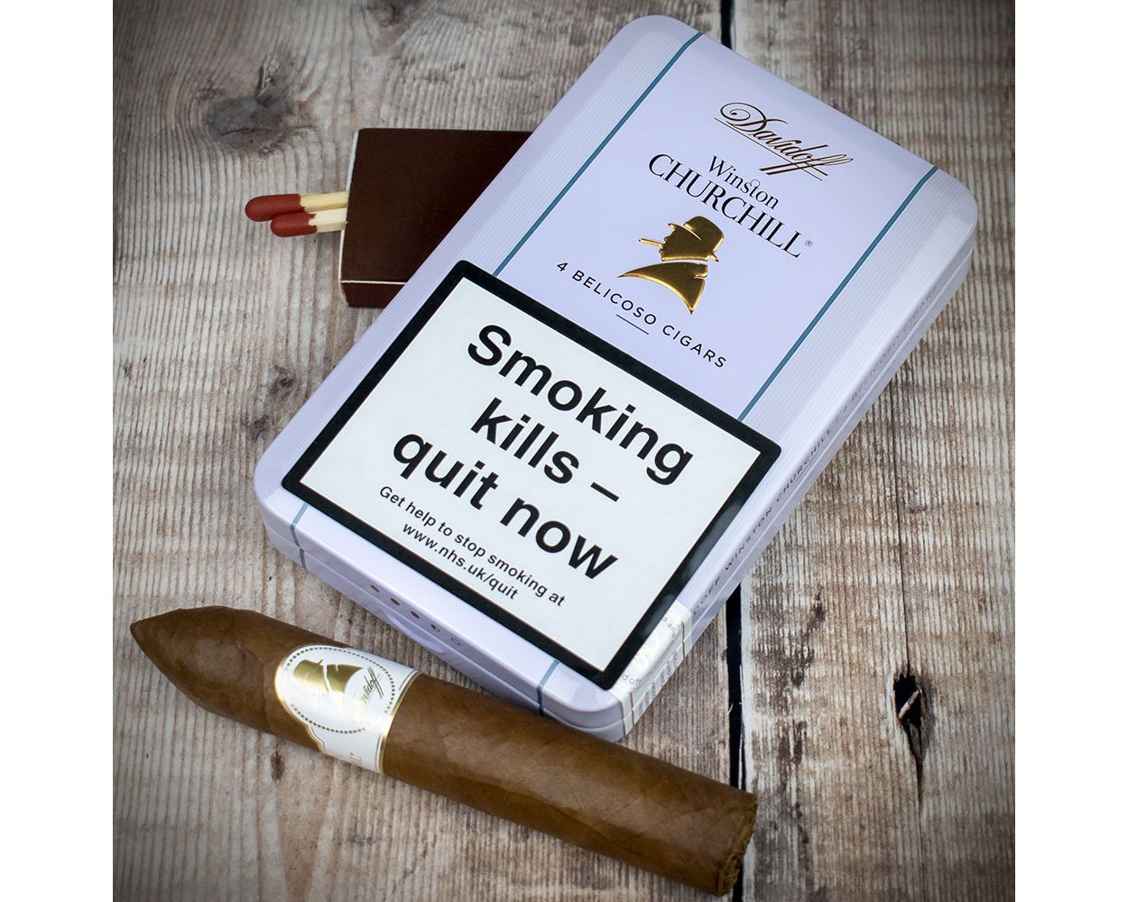 Winston Churchill Belicoso Cigars For Sale Australia Available in tins of four, boldly stamped with a silhouette of the famous wartime leader of Great Britan Winston Churchill. But Each cigar band also has this iconic leader embossed in gold. The Davidoff Belicoso is a short, intense cigar lasting around 20 minutes and requires a cigar cutter. All Davidoff cigars feature 4 year aged, hand-selected Dominican fillers.